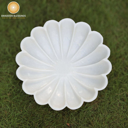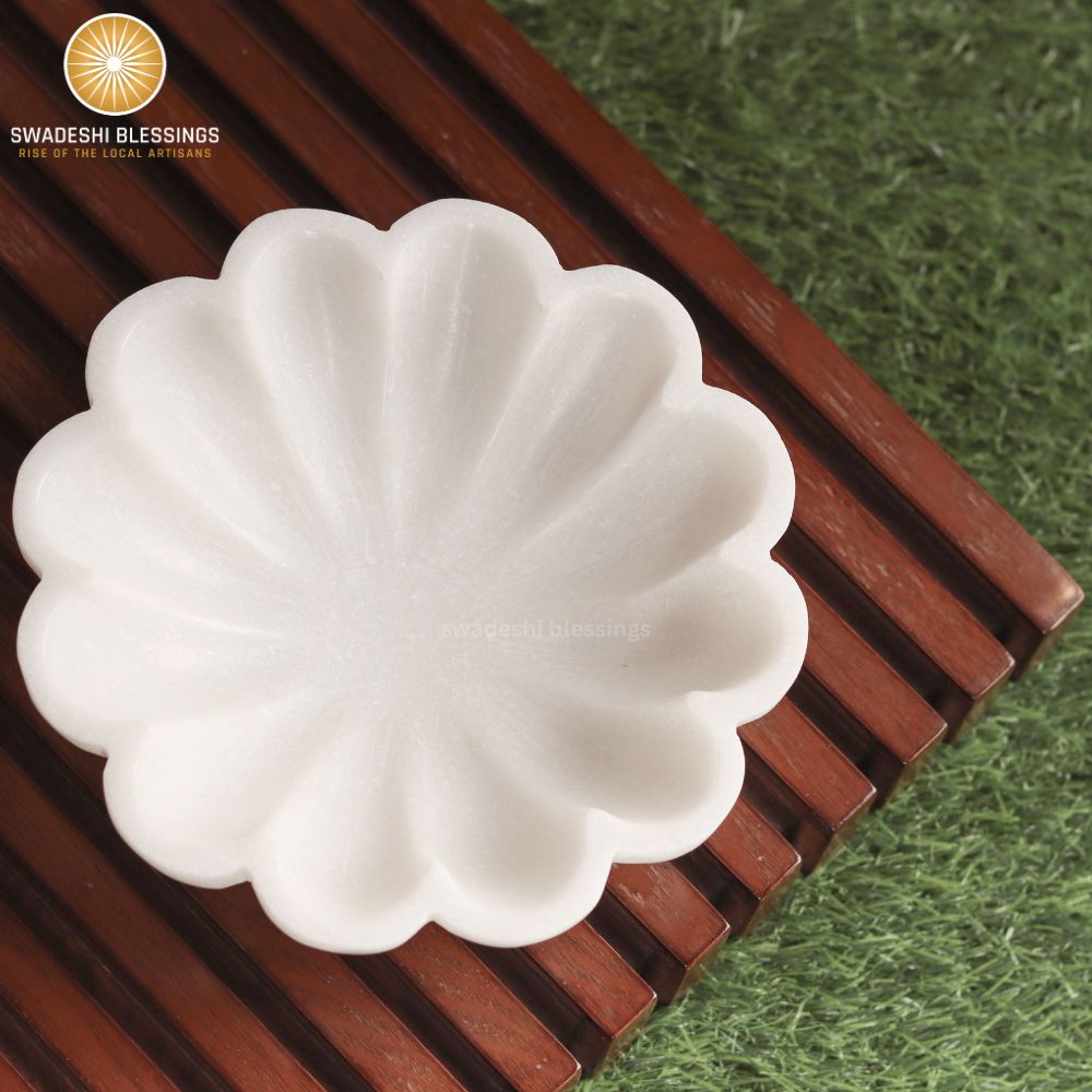 Handmade from a beautiful piece of white marble, this ruffle bowl showcases exceptional Indian craftsmanship. The unique ruffled edges brings out the natural grace and timeless charm of authentic marble from Rajasthan, India.